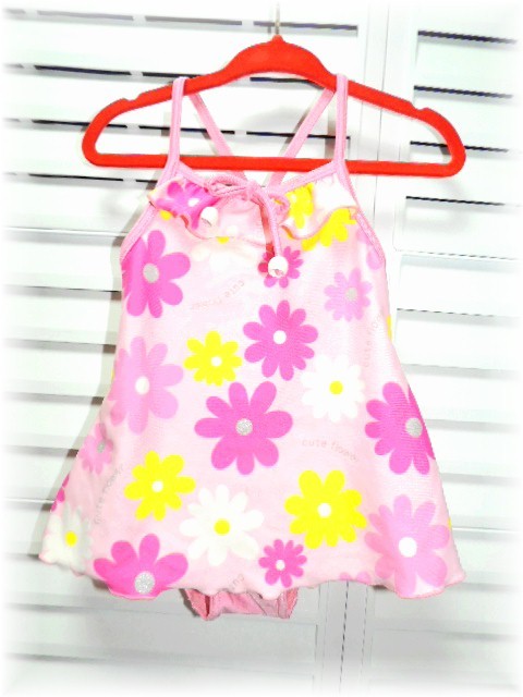 - ヤマトヤ バッククロス ワンピース水着 90cm ピンク×花柄