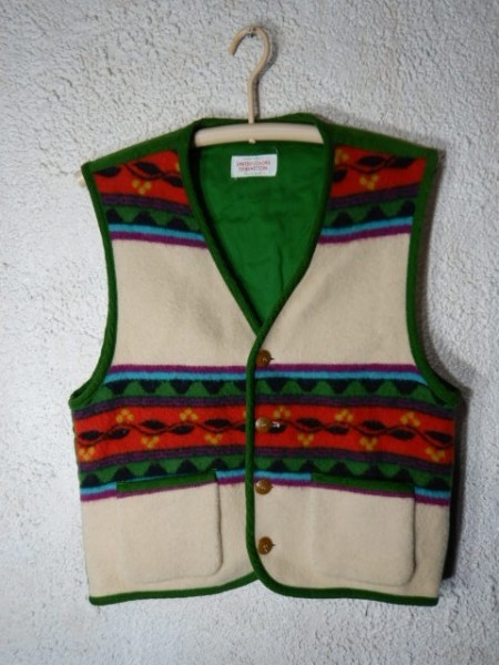 > to1666 レア ベネトン イタリア製 レトロ vintage ウール コーデュロイ 切り替え デザイン ベスト ジャケット アウトドア