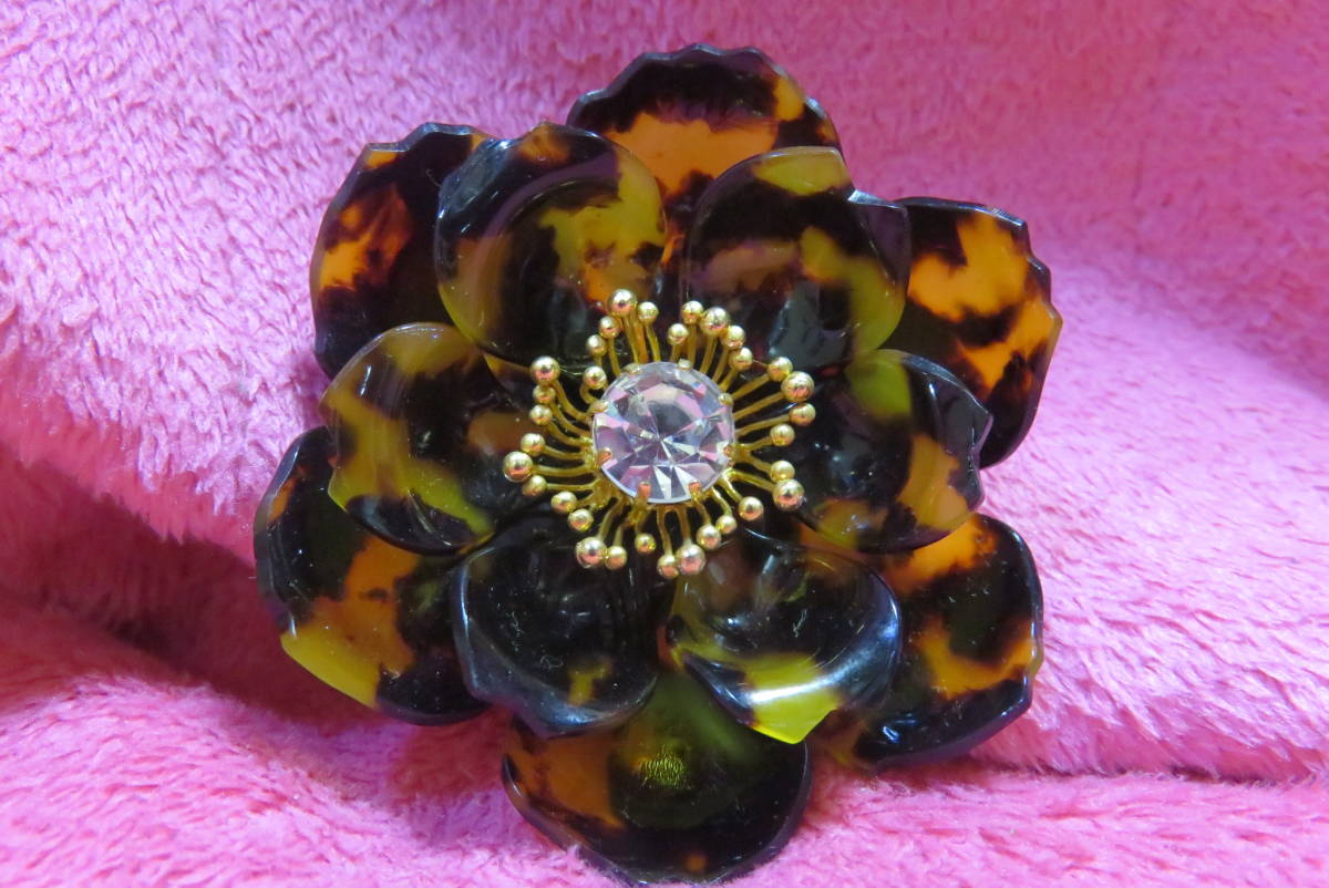 - O0043 ブローチ ラインストーン アンティーク調 花 べっ甲