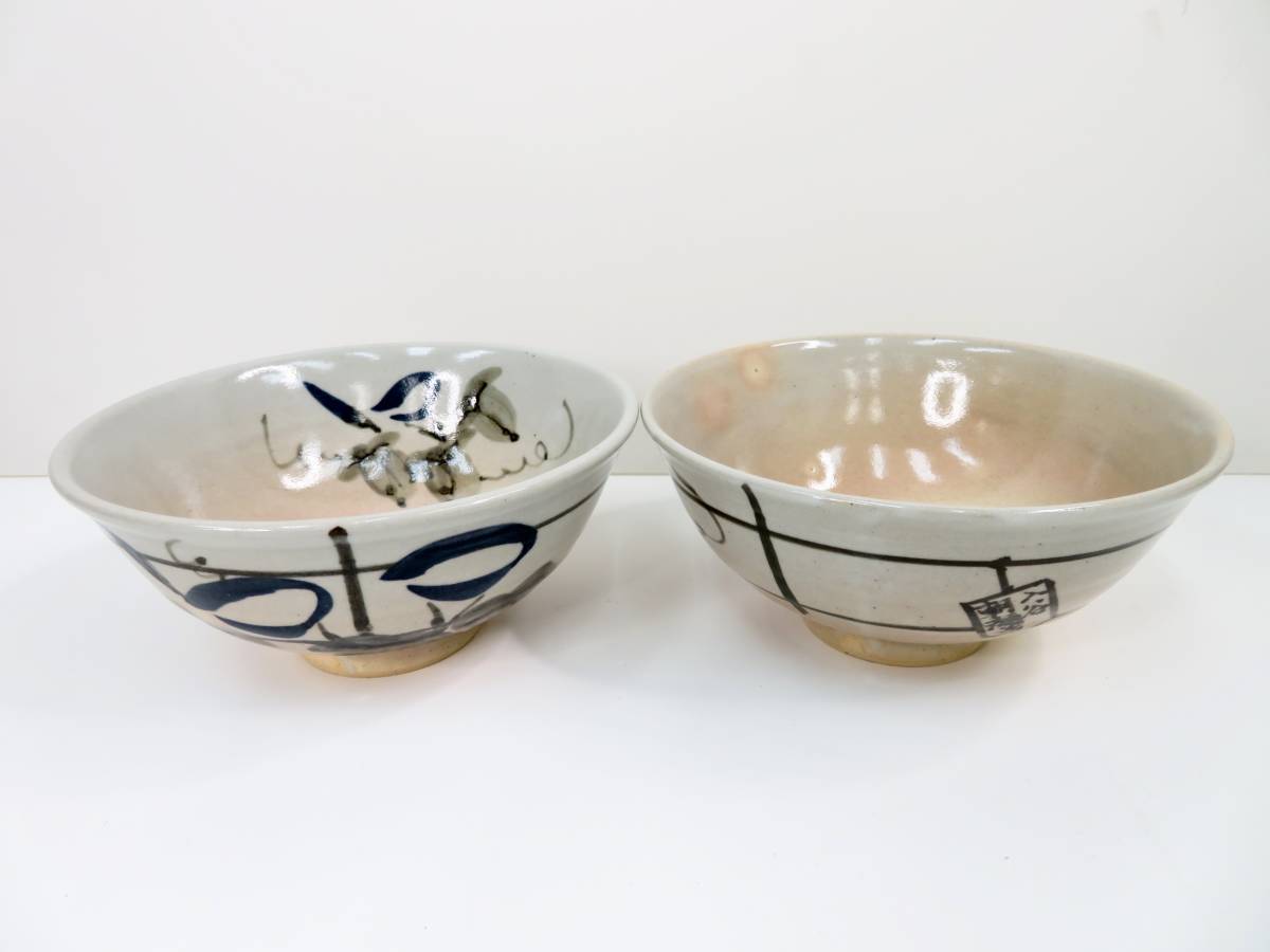 - ▲朝日焼 入谷 朝顔 茶道具 茶器 茶碗 お茶呑茶碗 銘あり 2客セット 極美品 管理2011 Z-2