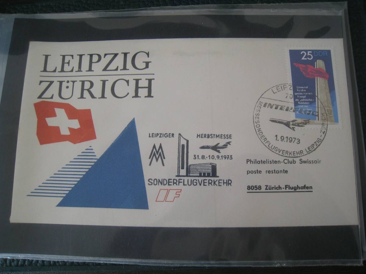 - ★F155 FDC/FFC初日カバー1973 スイス航空 ライプチヒ - チューリッヒ -