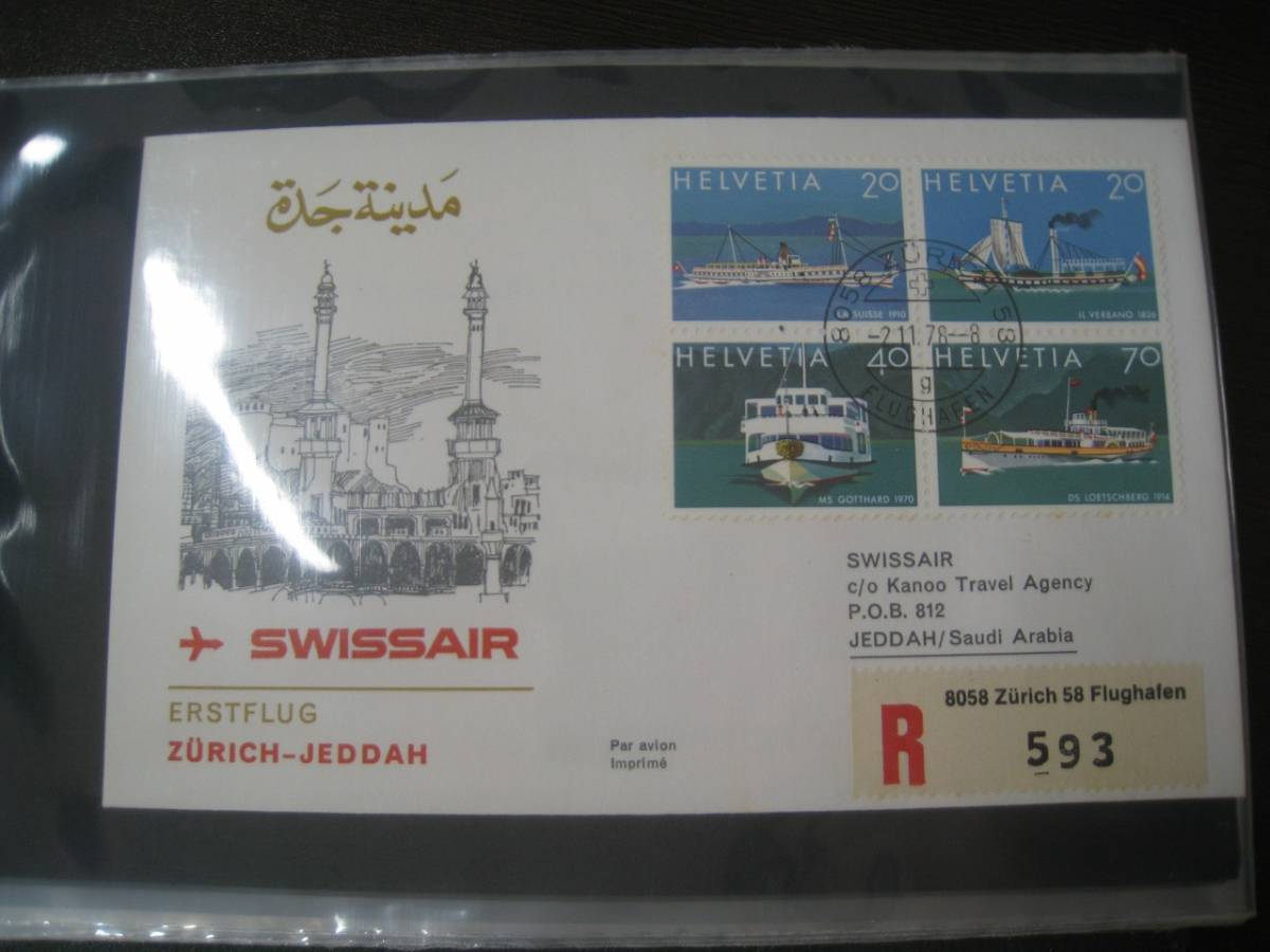 - ★F336 FDC/FFC初日カバー1978 スイス航空 チューリッヒ - ジェッダ -