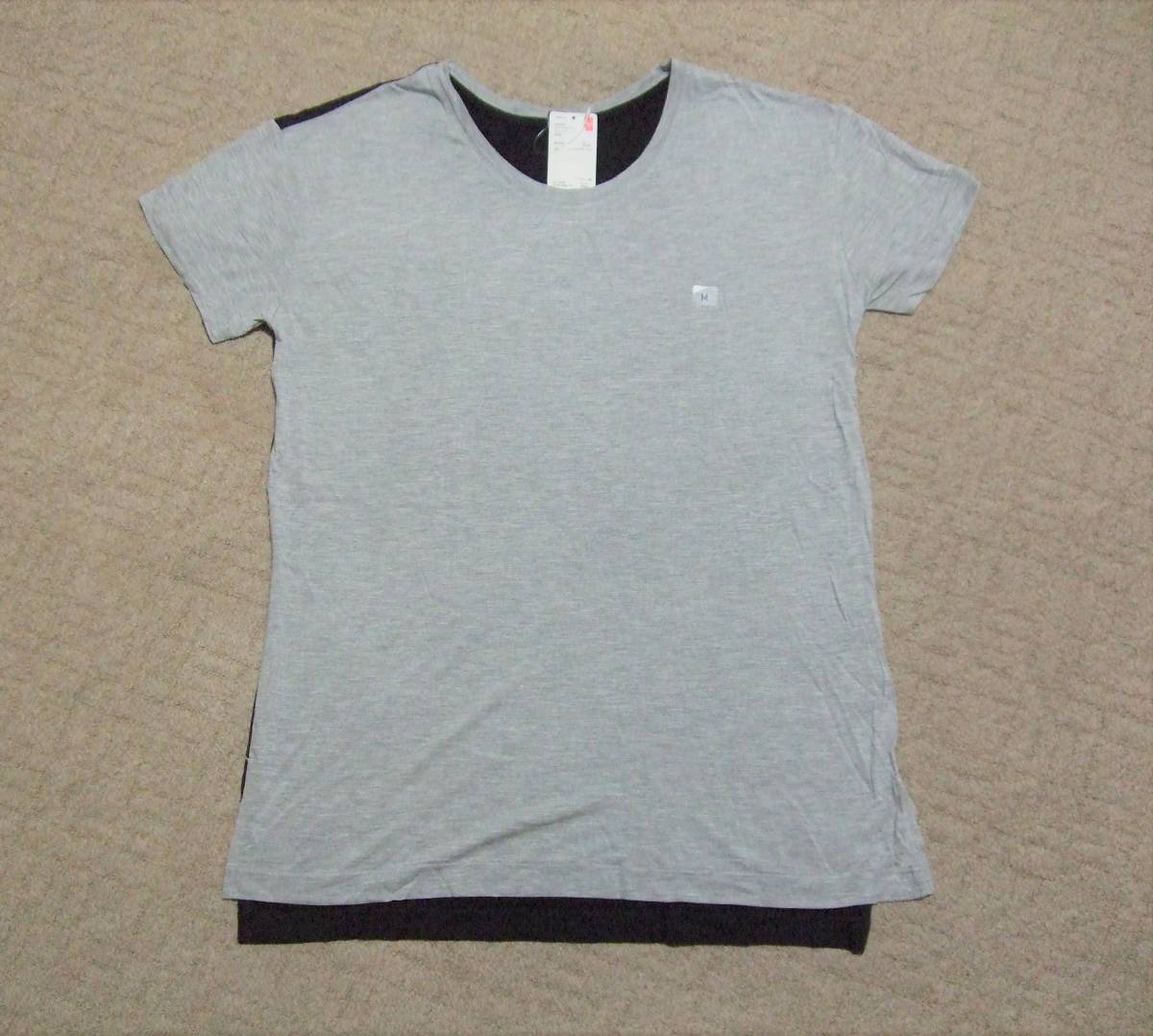 - 値下★ 未使用★ 訳有◆ ユニクロ チュニック M 半袖Tシャツ ストレッチ素材 モノトーン 黒 グレー ブラック 自宅保管品 ビッグシルエット