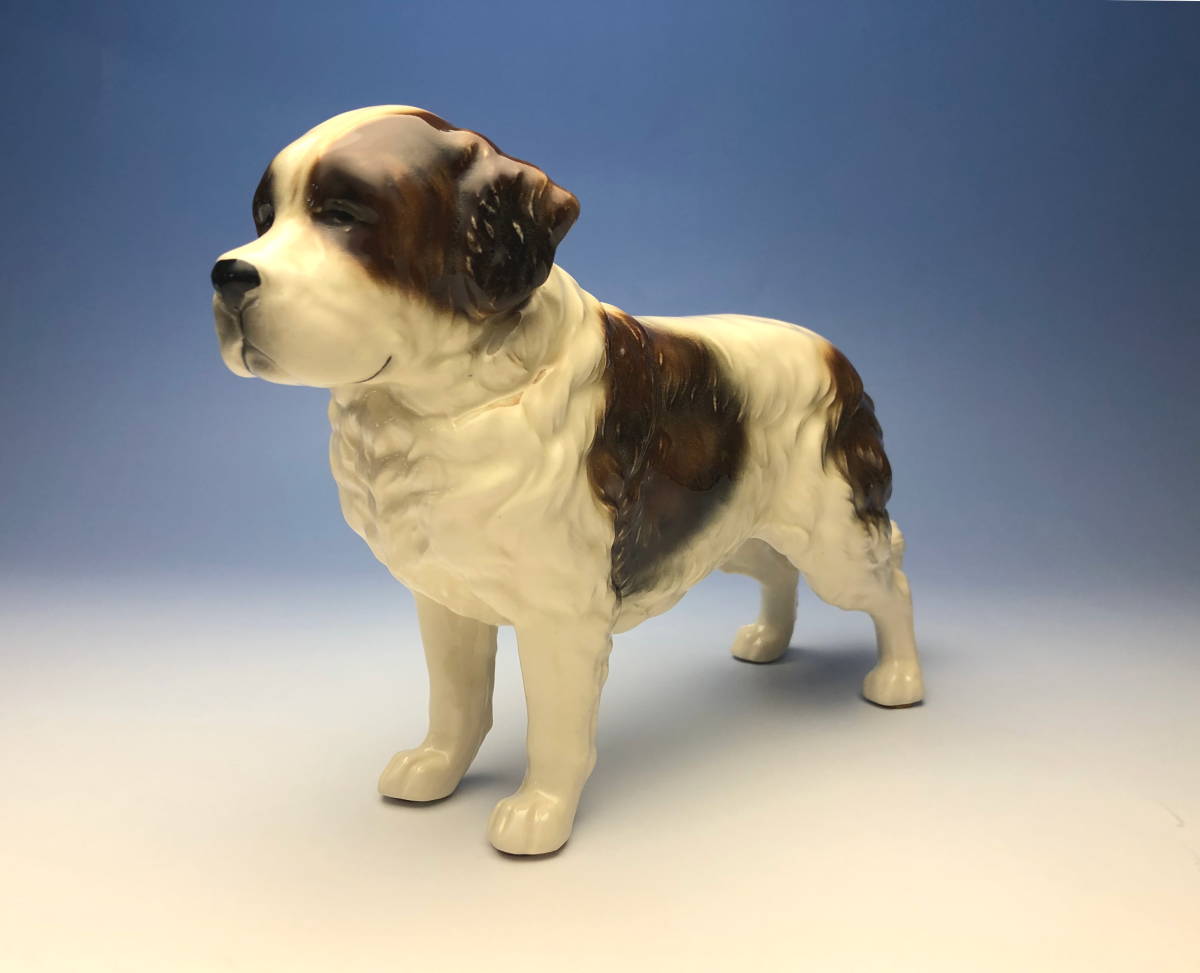 > 陶器製 犬置物 セントバーナード 新品 海外輸出向け 日本製 ハンドペイント 瀬戸物 セトノベルティ 犬フィギュア オブジェ