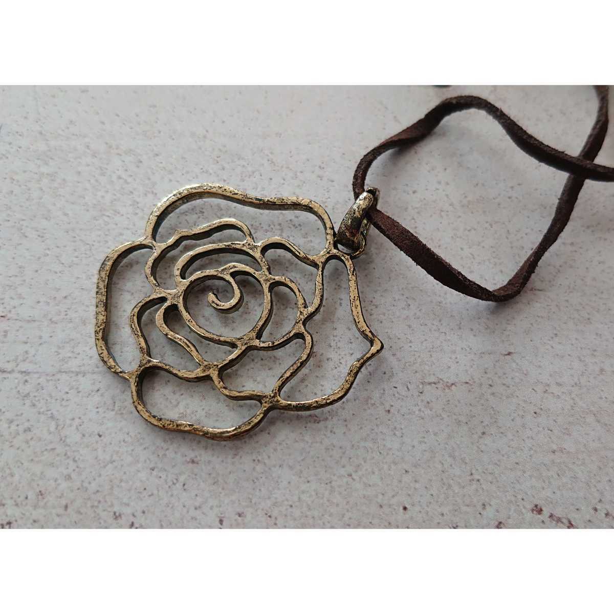 - □訳有り□アンティーク感□ゴールドカラー×透かし彫りバラモチーフのロングネックレス□