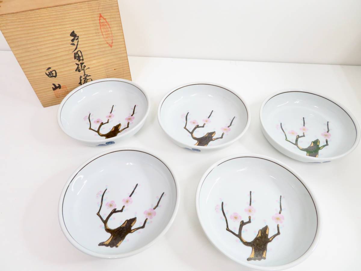 > ◆有田焼 西山 西山窯 多用鉢揃 桜柄 5客セット 同柄セット 陶器 磁器 伝統 工芸品 木箱付 未使用品 管理2010 W-1