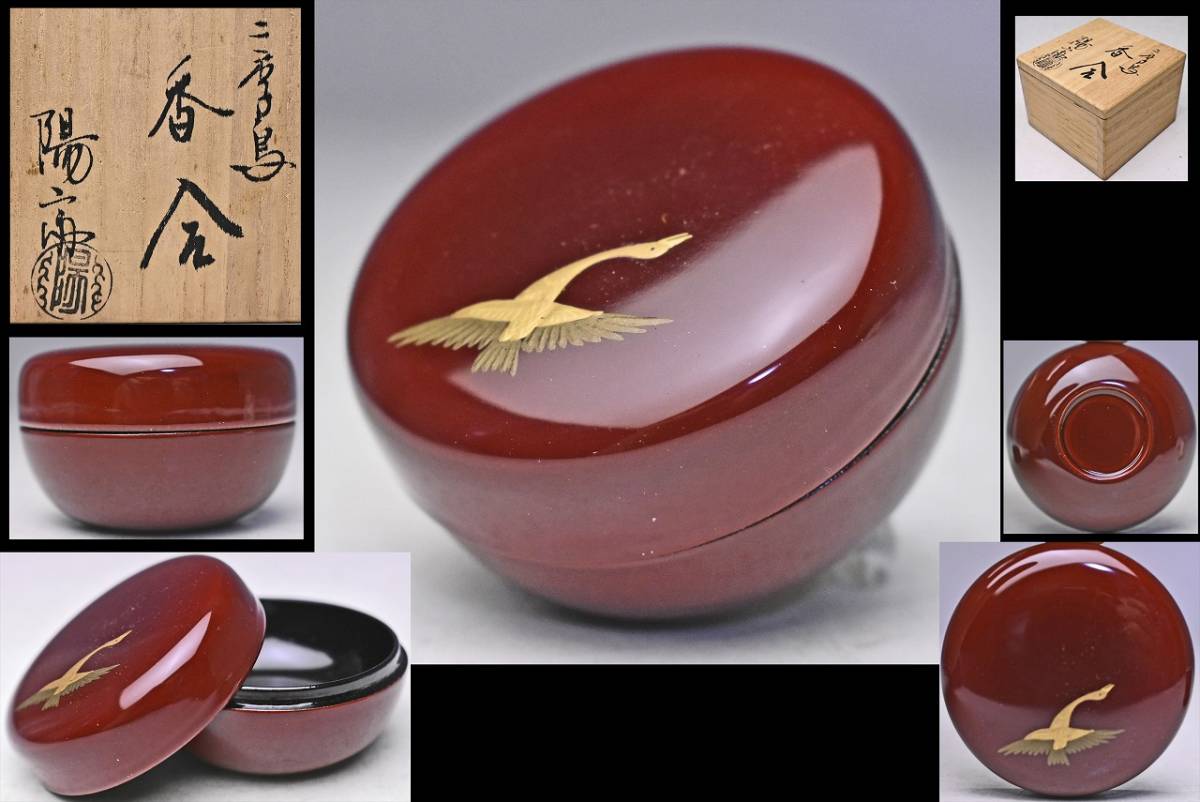 - 陽斎 ★ 二季鳥香合 ★ 共箱 ★ 塗師 ★ 認得斎好み ★ 雁の金蒔絵 ★ 溜塗りの小さめの香合 ★ 茶道具 ★ 漆塗