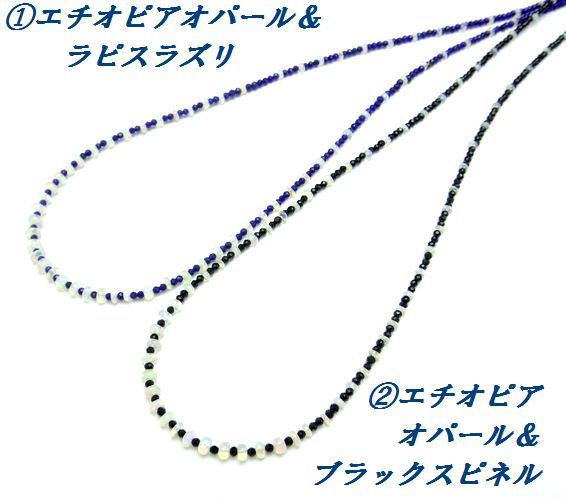> 【70cm】エチオピアオパール&ラピスラズリ/ブラックスピネル ロングネックレス 10月誕生石 天然石