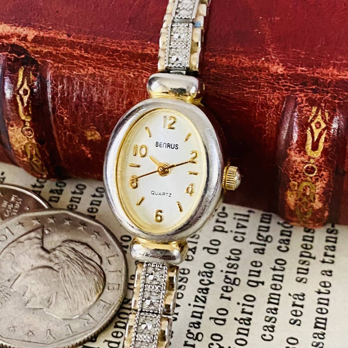 - 【高級時計ベンラス 】Benrus クォーツ 腕時計 レディース ビンテージ ブレスレット カクテル ウォッチ クリスタル 訳あり