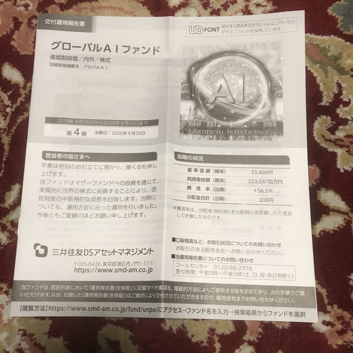 - 投資信託『グローバルAIファンド』交付運用報告書(2019年9月26日~2020年9月25日)