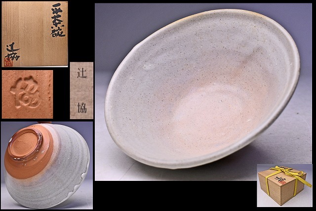 > 辻協 ★ 白釉 平茶碗 ★ 共箱 栞 ★ 女流陶芸家 ★ 気品と暖かみのある逸品 ★ 辻清明氏の奥様 ★ 茶道具 ★