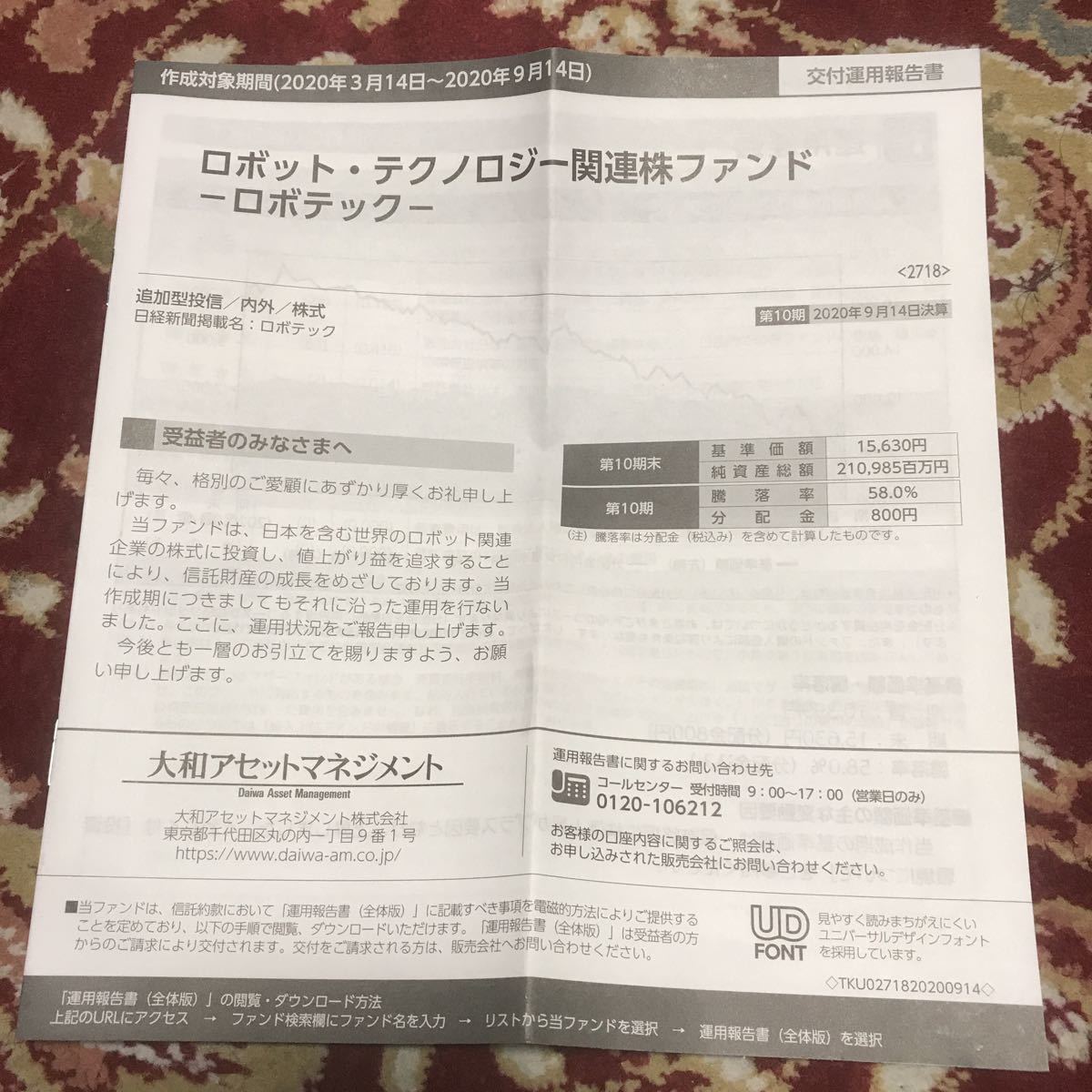 - 投資信託『ロボットテクノロジー関連株ファンドーロボテック』交付運用報告書(2020年3月14日~2020年9月14日)