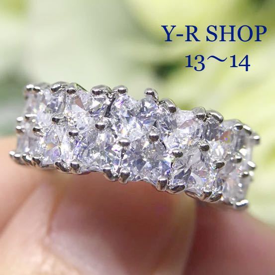 - ★13号14号★ハート型ホワイトトパーズたっぷりのエレガントリング★レディース指輪シルバーアクセサリーキュービックジルコニア