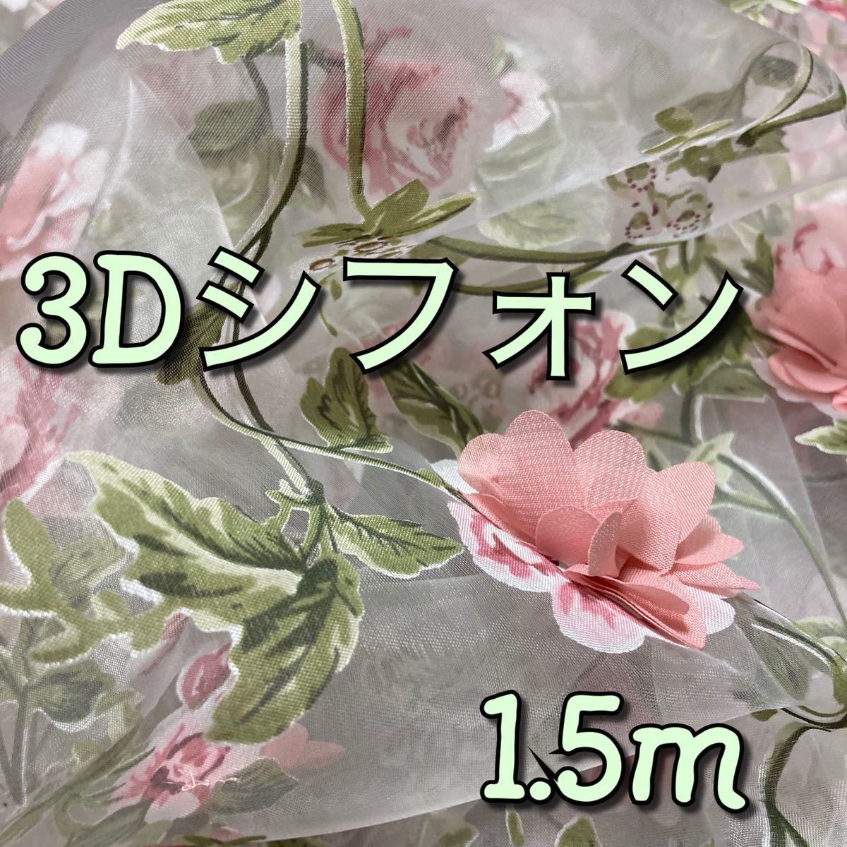 - 高品質3Dシフォンローズフラワー生地1.5m