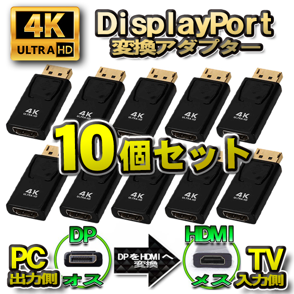 - 【4K】【10個セット】DP to HDMI 変換アダプター ディスプレイポート 変換コネクタ 4K対応