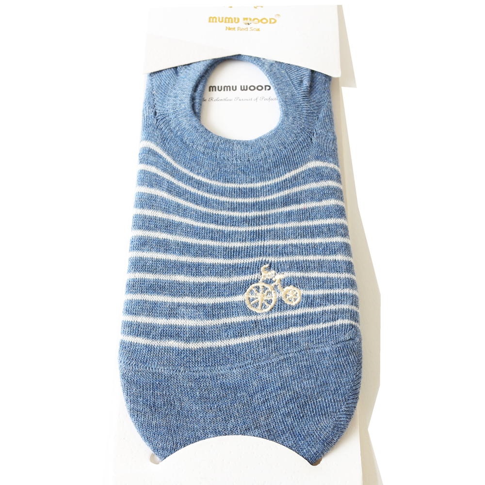 - くるぶし ソックス 靴下 レディース くるぶし靴下 滑り止め 自転車 スニーカー アンクル 自転車刺繍 自転車柄 ショートソックス ブルー