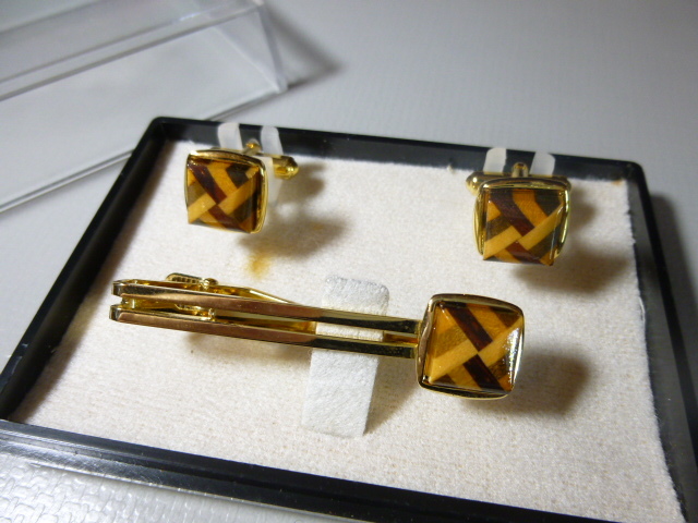 - ξ 寄木細工 カフス タイピン セット ξ 木 象嵌
