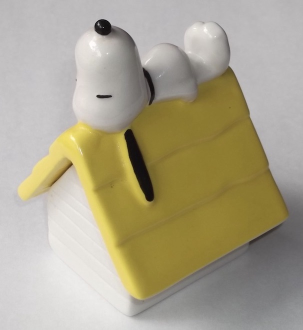 - ビンテージ 古い 陶器 スヌーピー 犬小屋 小物入れ FEATURE SYNDICATE INC 昭和 レトロ ピーナッツ 60s? 人形 置物 キャンディーボックス