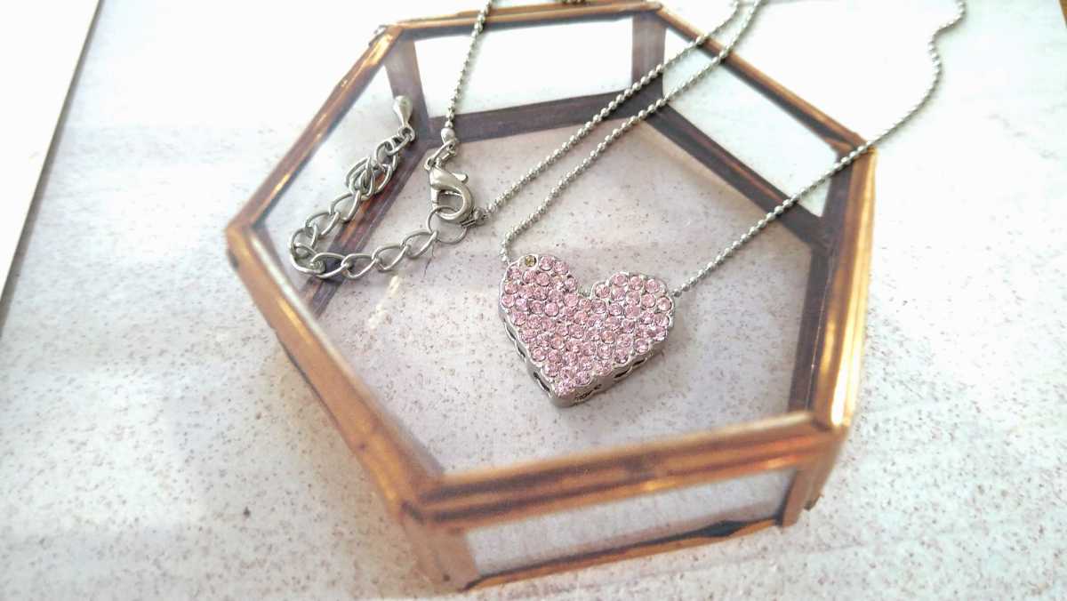 - □煌めくピンクラインストーン×ハートのネックレス□