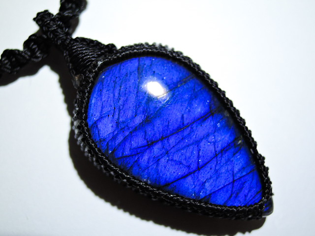 - ★ディープブルーラブラドライト★天然石曹灰長石★黒マクラメ編みハンドメイド★ネックレスペンダント★男女兼用フリーサイズ★kamesan