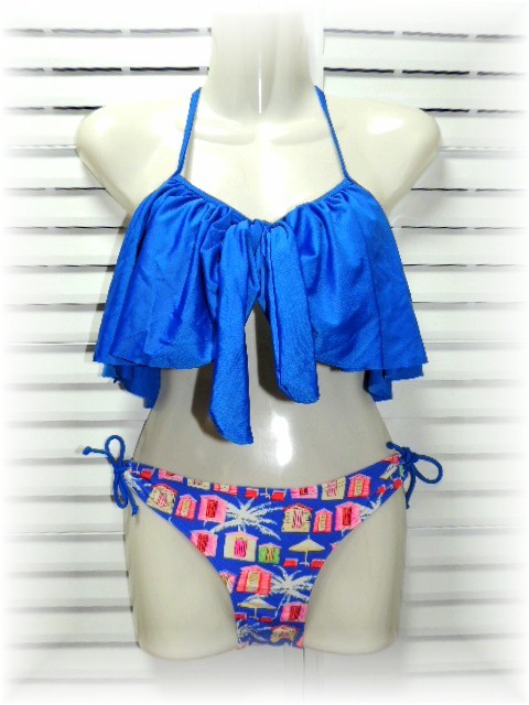 - KOEI STORE フリル付き セパレート水着 ビキニ 9号/M 光沢生地 ブルー 未使用品