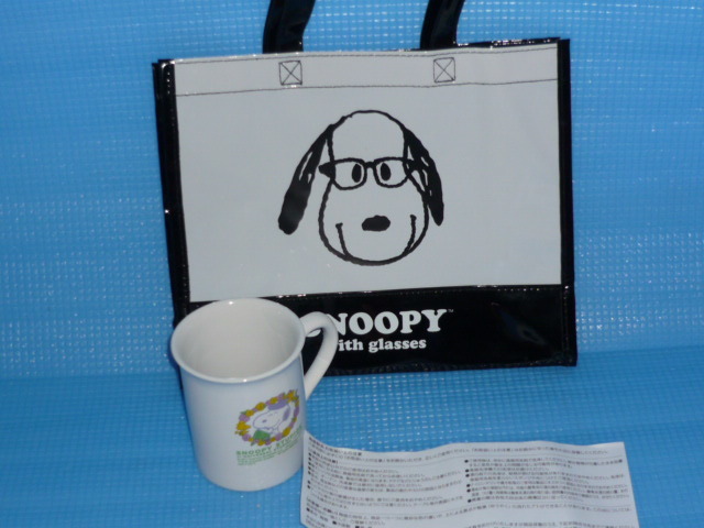 - a★未使用★SNOOPY with glasses エナメル調トートバッグとUSJ×NISSAY SNOOPYマグカップ