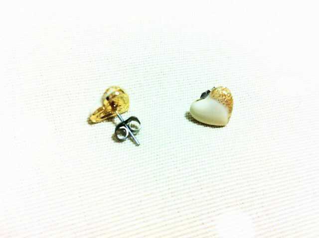 - 新品未使用 ハートピアス 白 ゴールドラメ カジュアル かわいい pop ホワイト heart