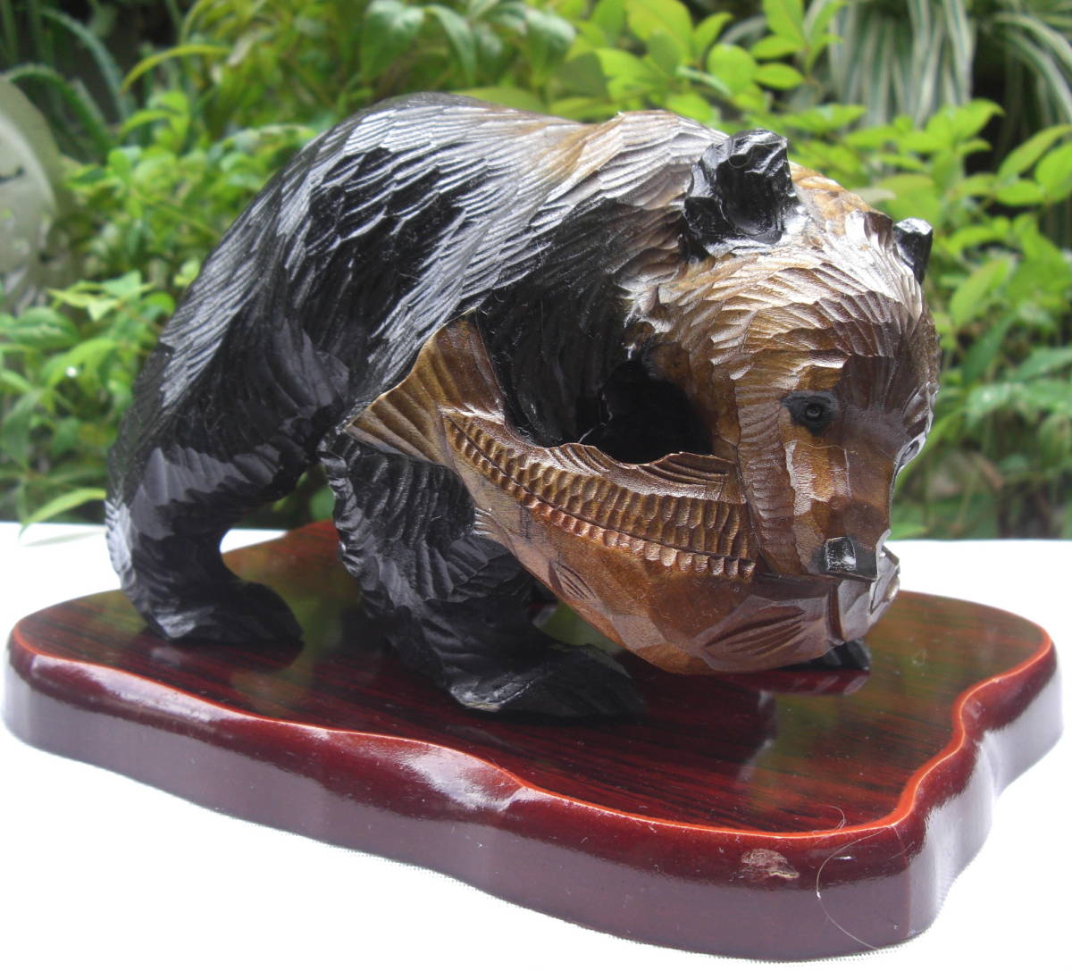 - ★☆置き物/コレクション:民芸彫り自然木「仔熊,鮭喰え」中古品!!No4☆★