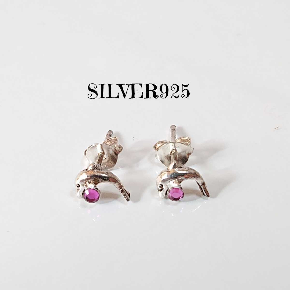> 2120 SILVER925 ラインストーン ミニ ドルフィンピアス ピンク シルバー925製 カラ―ストーン イルカ 小 海の生物 ハワイアン 可愛い☆