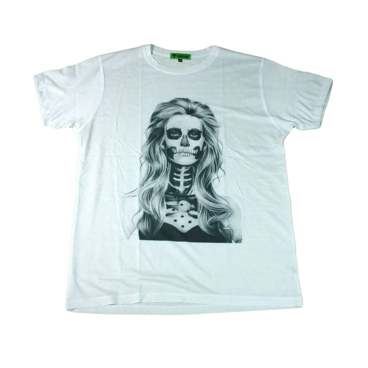 - セクシーガール ガイコツ ドクロメイク 死者の日 ストリート系 デザインTシャツ おもしろTシャツ メンズ 半袖★M255XL