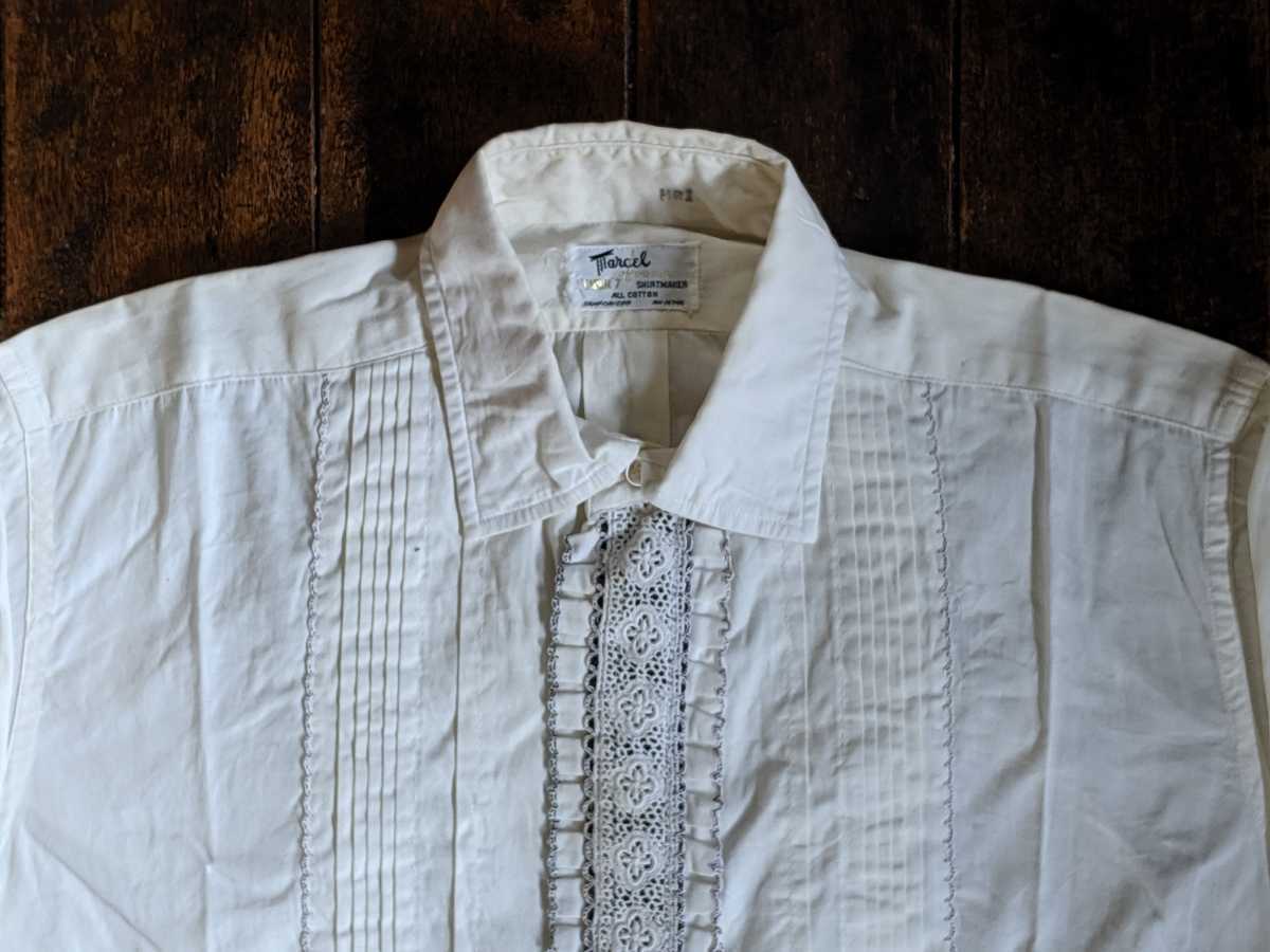 > アンティーク ★ 装飾 ドレス シャツ 正装 ビンテージ ワーク ボックス オフィサー クレリック ハワイアン ボーリング ミリタリー ボタン