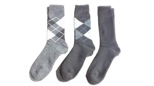 - あ7779■訳あり 足口ゆったり 裏パイル クルーソックス 3足組 25-27㎝ ブラック系(アーガイル柄)