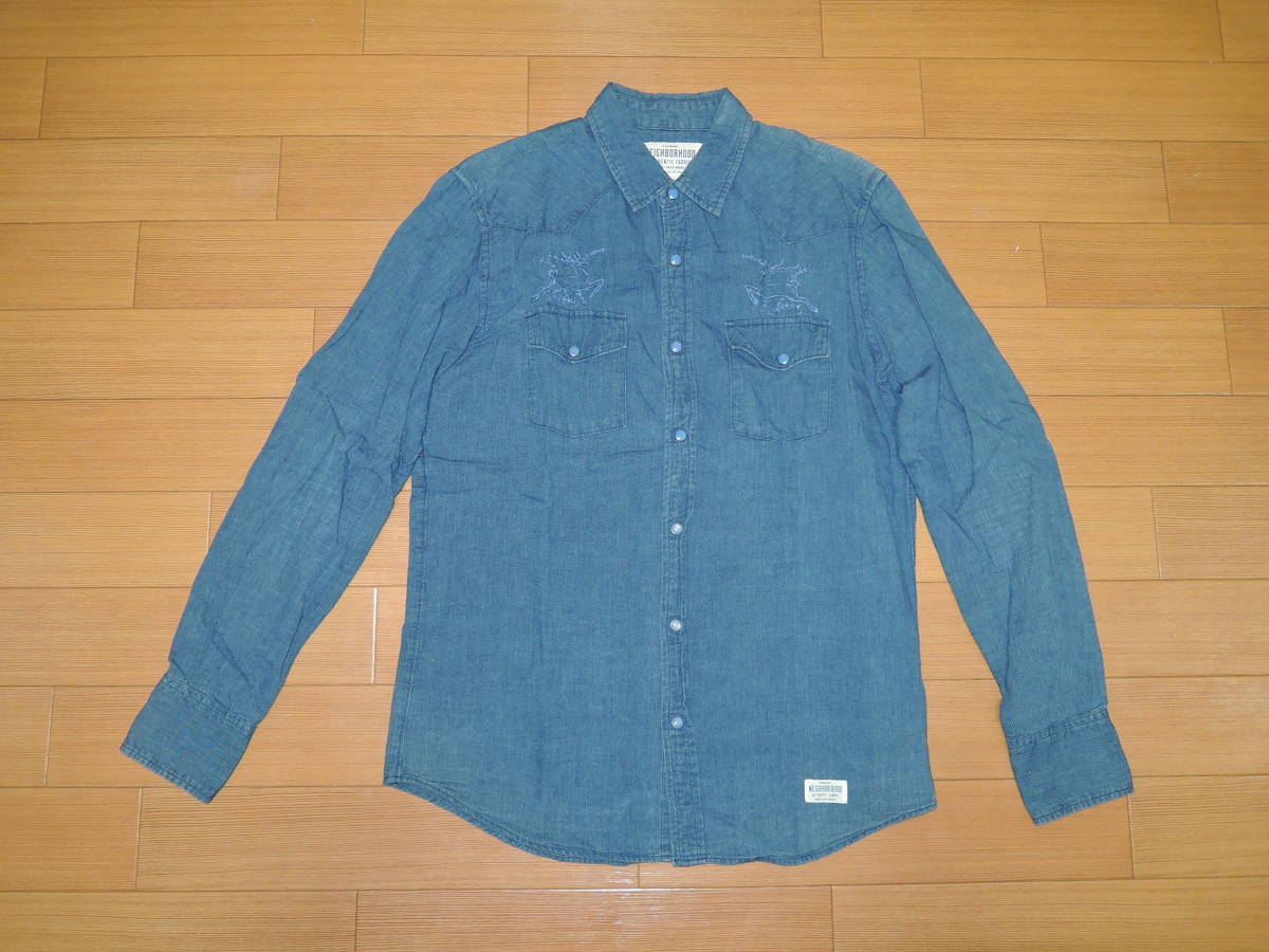 - NEIGHBORHOOD ネイバーフッド 鹿 刺繍 デニムシャツ M ステッチ /