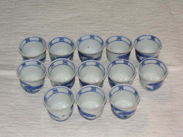 - 猪口 染付 13客 鹿図 ぐい呑み 覗き小猪口