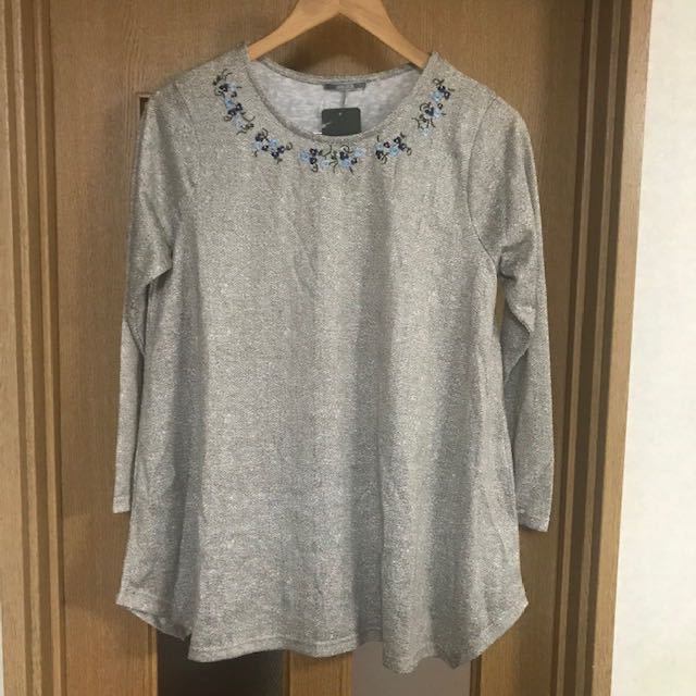 - 新品 レディース M 襟元 花柄 刺繍 オーバーブラウス シャツ