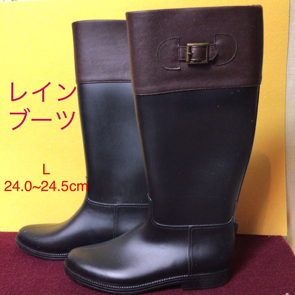- 【売り切り!送料無料!】A-108 レインブーツ!L!24.0cm!24.5cm!ロング丈!長靴!未使用に近い!