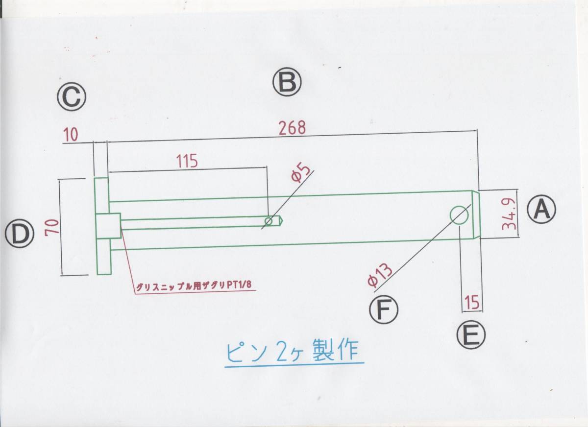 - NO603 φ35用 ツバ下268mm グリス穴付きバケットピン 2本セット