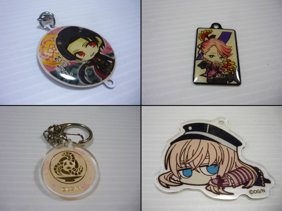 - 【送料無料】刀剣乱舞 アクリルチャーム キーホルダー メタルチャーム ストラップ 4個セット / まとめ 日本号 紋柄 乱藤四郎 宗三左文字