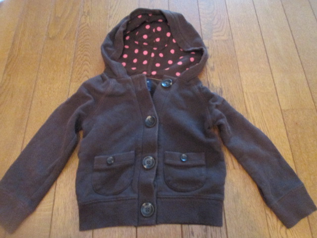 - 90 長袖 Baby Gap 茶色ピンク水玉柄 パーカー