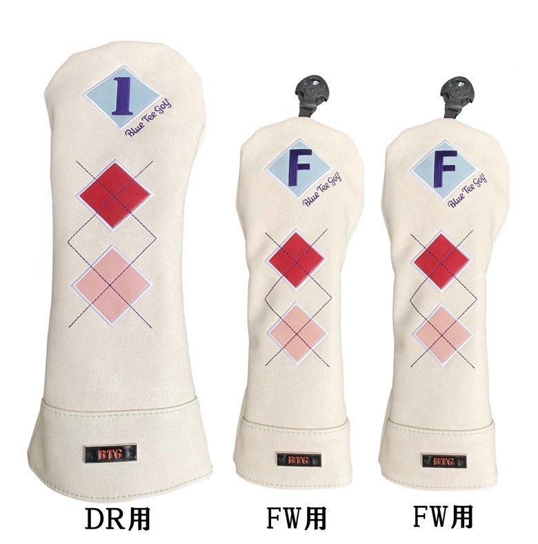 > ■オークション【3PB-オフホワイト・ブルー】ブルーティーゴルフ【アーガイル - クラシックモデル】3本セット販売(B)ヘッドカバー 送料無料