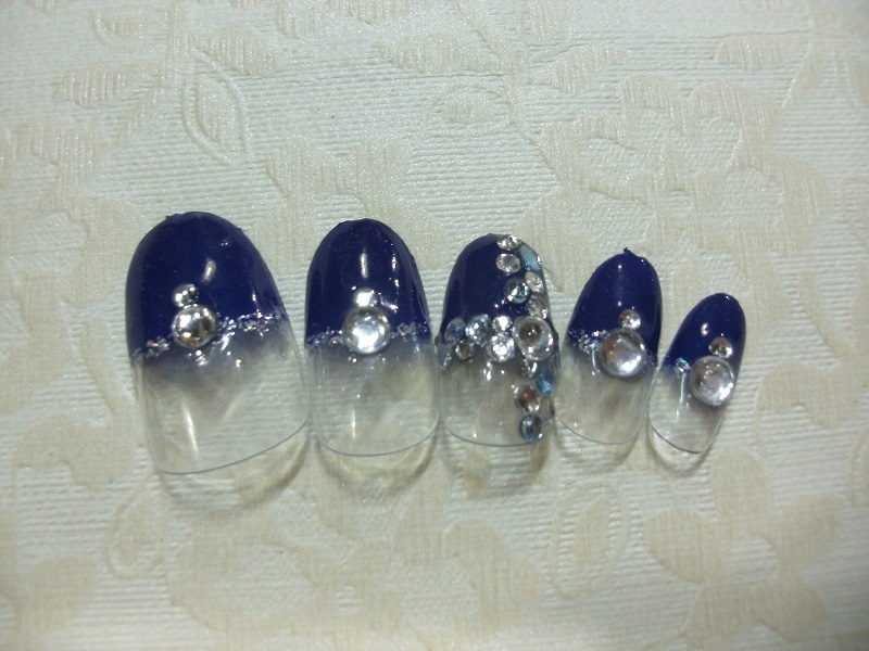 - ・(定型外orクリックポスト発送込み) 紺のフレンチとキラキラストーンでネイルチップ ジェル使用作品