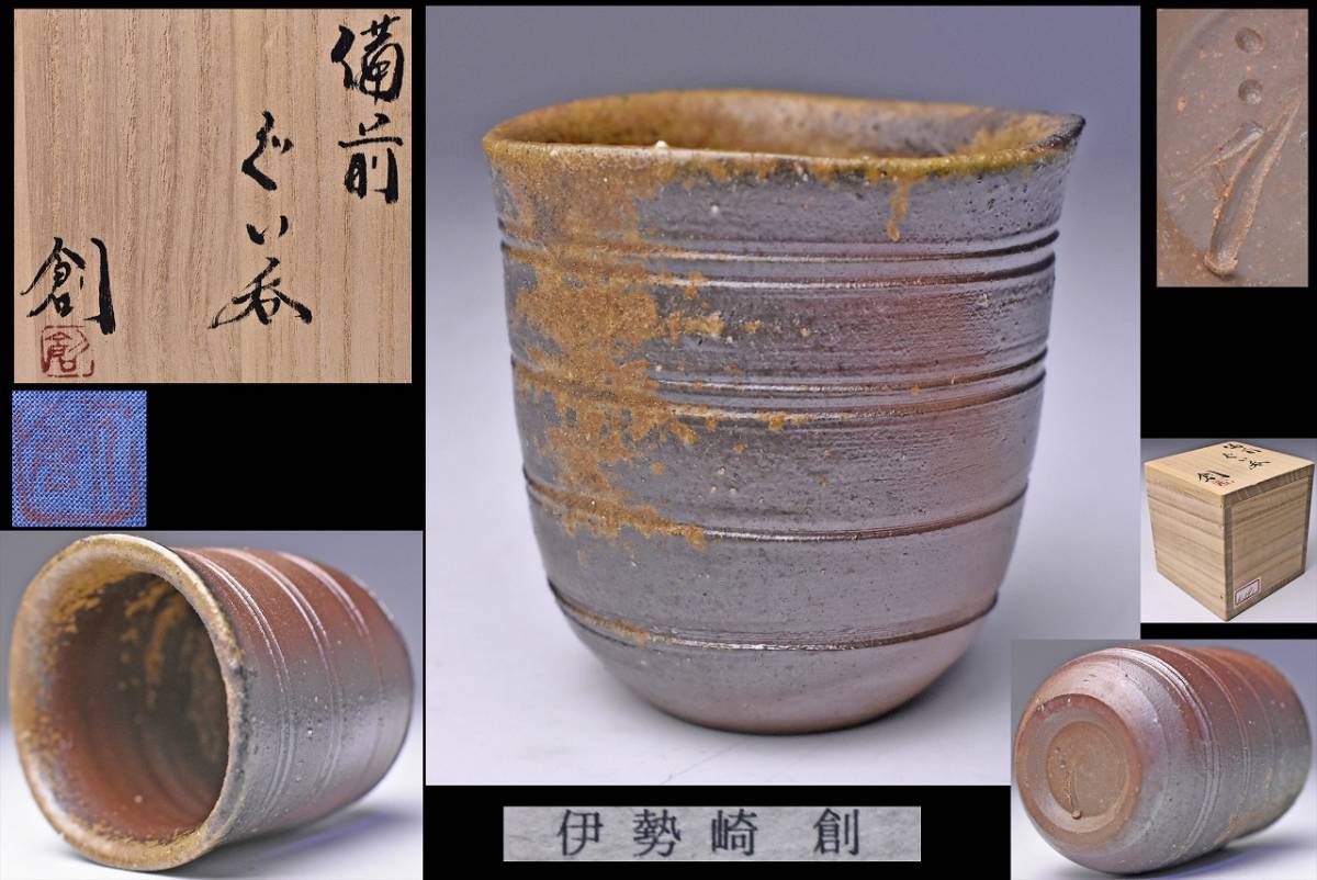 - 伊勢崎創 ★ 備前 ぐい呑 ★ 共箱 共布 栞 ★父:伊勢崎満 / 師:山下譲治★検 人間国宝 伊勢崎淳 伊勢崎陽山 伊勢崎競 伊勢崎紳 伊勢崎卓
