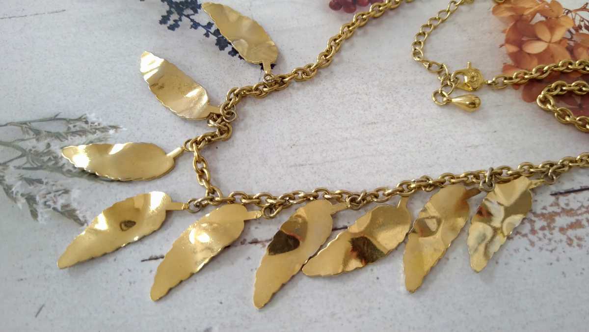 - □PAT PNDG 刻印□ゴールドカラー・リーフモチーフネックレス□