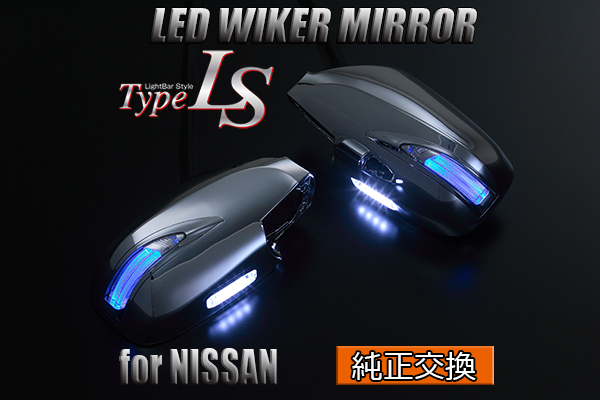 > [限定3] Revier C34 ステージア LEDウィンカードアミラー 1型 [メッキ/ポジション青光] 純正交換 フットランプ付 ウインカーミラー 左右
