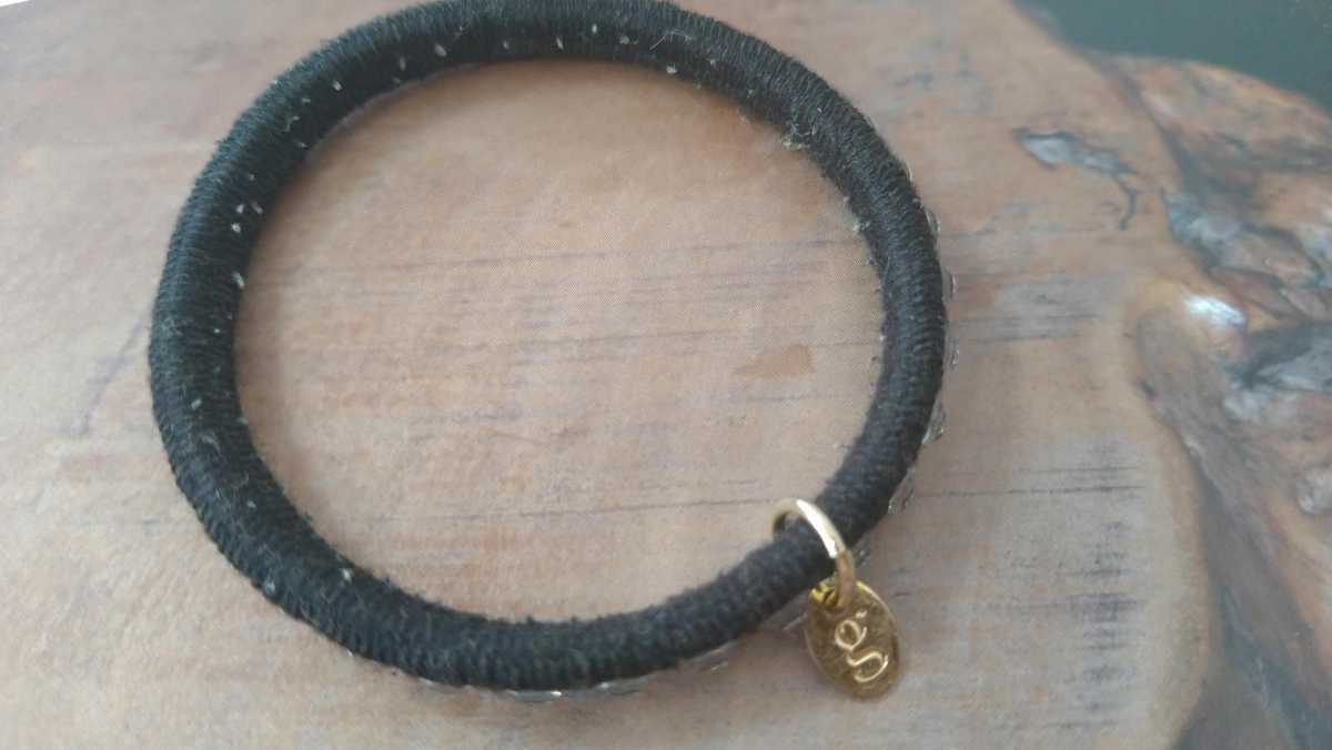 - □訳あり□黒ゴム×ラインストーン・ブレスレット□gチャーム付き□