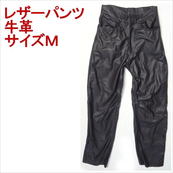 - アウトレット 牛革 ブラック レザーパンツ バイカー ライダース 牛皮 M