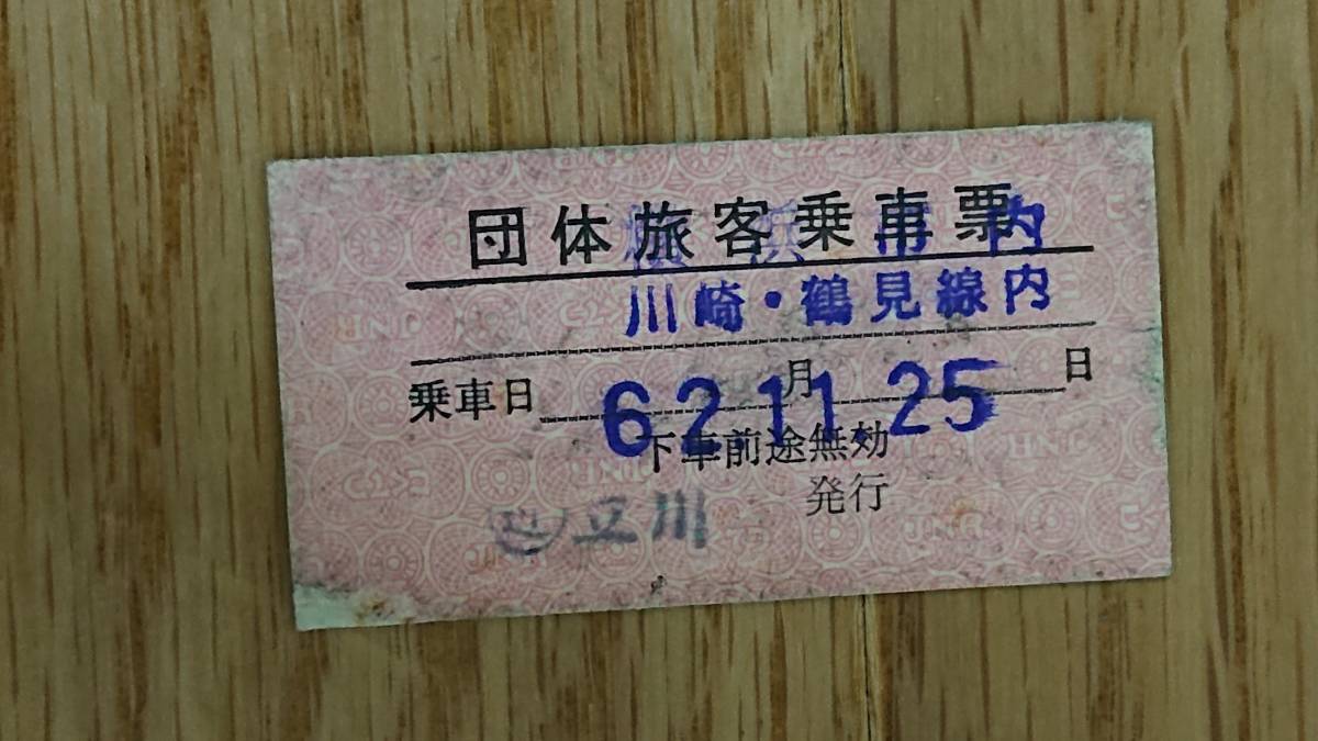 - 硬券・団体旅客乗車票 川崎・鶴見線内 昭和62年11月25日