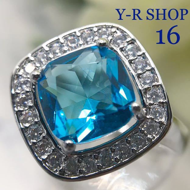 > ★16号★ブルートパーズとホワイトトパーズのエレガントリング★レディース指輪シルバーカラーストーンキュービックジルコニアcz新品宝石