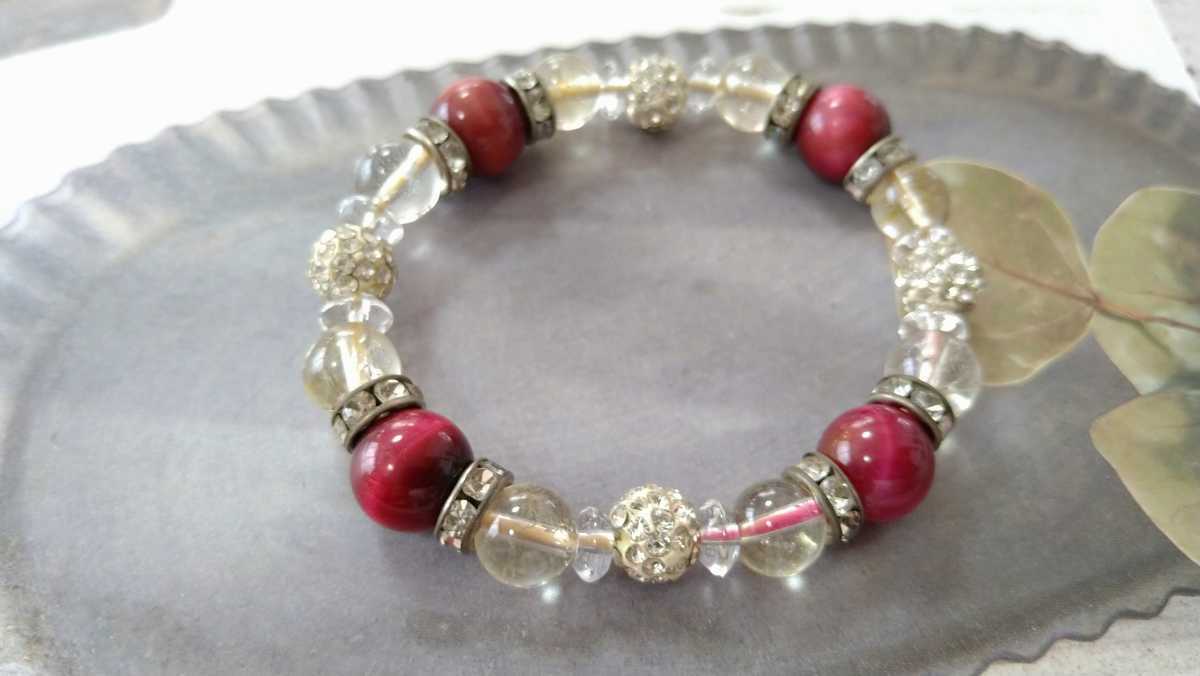 - □クリア×エンジ系ストーン×ラインストーン・ブレスレット□