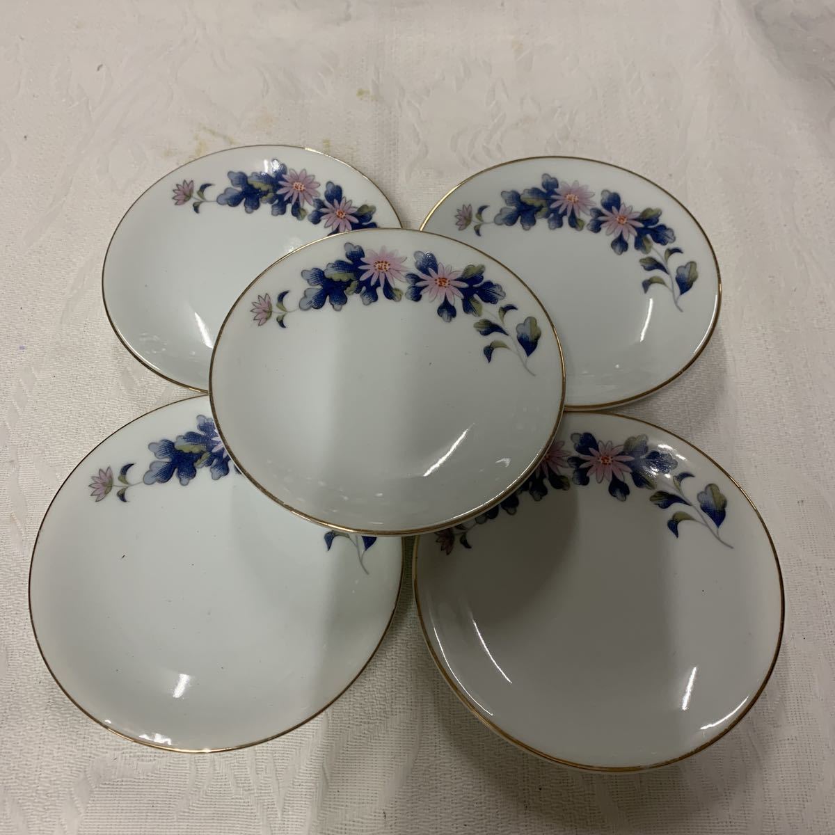 - 深川製磁 宮内庁御用達 小皿 皿 食器 花柄 可愛い 計5点 箱無し
